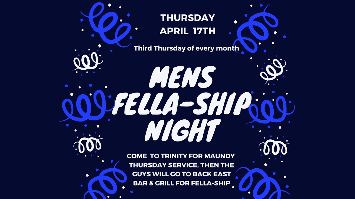We are excited to invite all the fellas of Trinity Lutheran Church to join us for Maundy Thursday service on April 17, followed by a time of fellowship at Back East Bar & Grill.